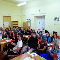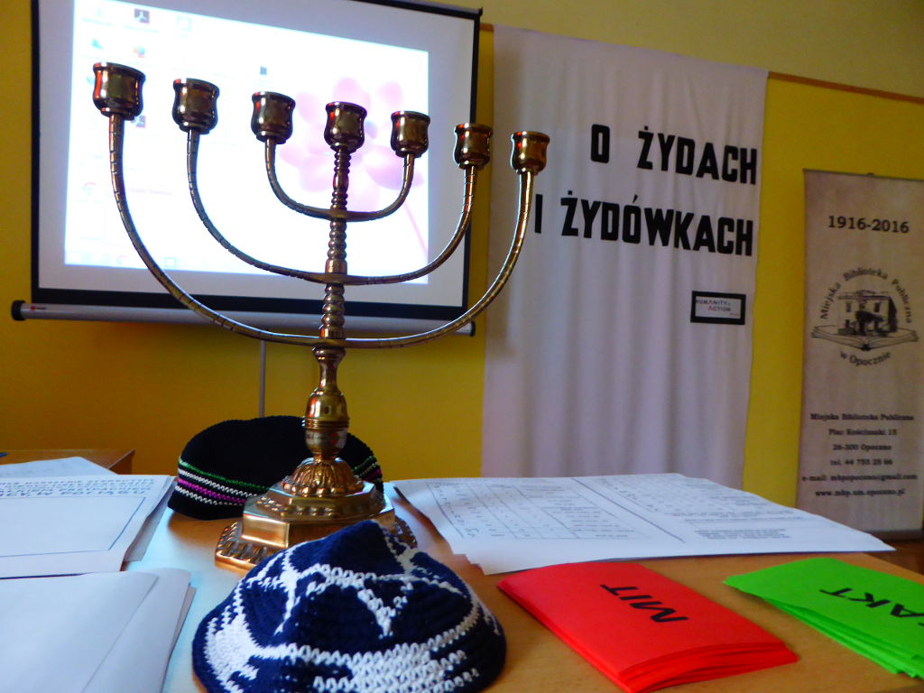 Przy przeprowadzeniu zajęć pomagał dyrektor MDK w Opocznie Andrzej Śliwka, który od lat interesuje się historią społeczności żydowskiej w naszej okolicy. Opowiedział on o swoich sukcesach w poszukiwaniu śladów mniejszości żydowskiej oraz potrzebie ocalenia pamięci o roli Żydów w życiu naszego miasta. W dalszej części spotkania młodzi ludzie zmierzyli się z faktami i mitami dotyczącymi Żydów, usłyszeli jak brzmi język hebrajski i jidysz oraz zapisali swoje imię po hebrajsku.