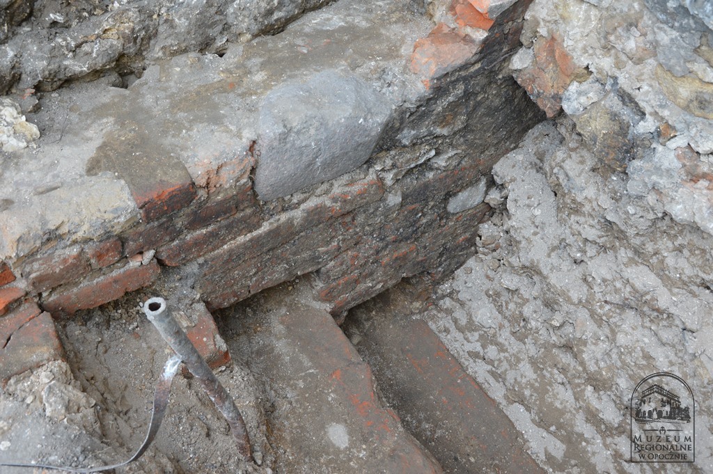 W drugim wykopie od strony wschodniej, tuż przy fundamencie, prace archeologiczne pozwoliły na odsłonięcie pustki pod zamkiem zakończonej współczesną zamurówką z cegły. Jest to nic innego jak blisko dwumetrowej długości fragment piwnicy, która obecnie znajduje się pod salą ekspozycyjną nr 6 opoczyńskiego Muzeum. Ceglana zamurówka, która zmniejszyła znacznie powierzchnię piwnicy powstała w latach 80. XX w. podczas adaptacji pomieszczeń zamkowych na potrzeby siedziby Muzeum Regionalnego w Opocznie.