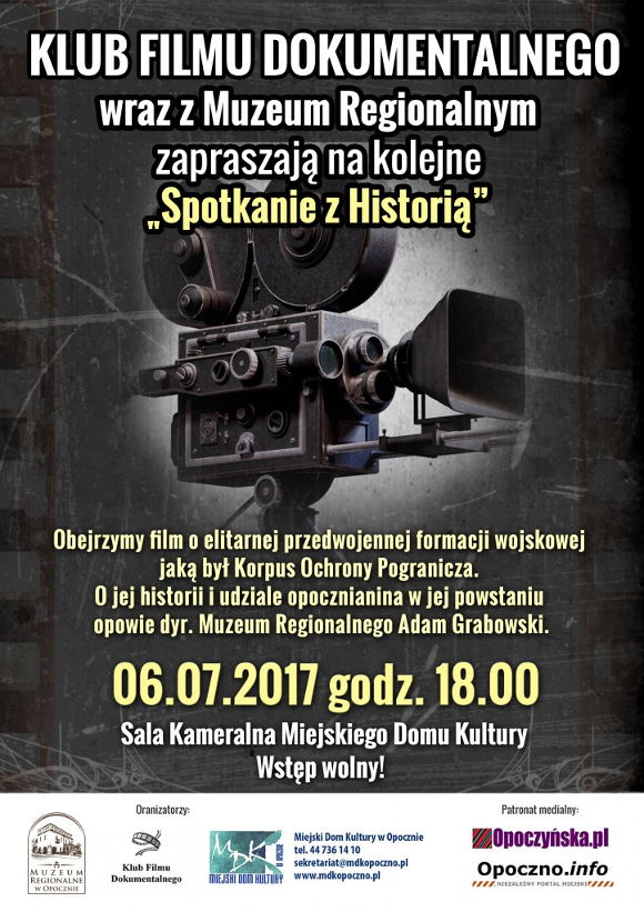 Klub Filmu Dokumentalnego MDK wraz z Muzeum Regionalnym zapraszają na kolejne „Spotkanie z Historią”, którego tematem będzie elitarna przedwojenna formacja wojskowa jaką był Korpus Ochrony Pogranicza.