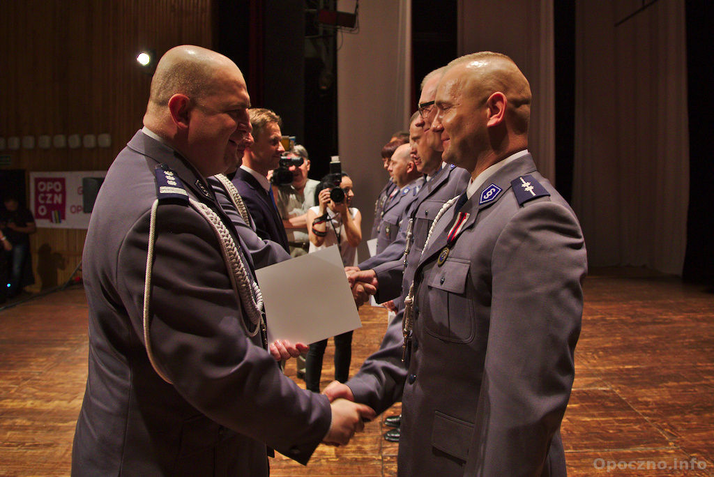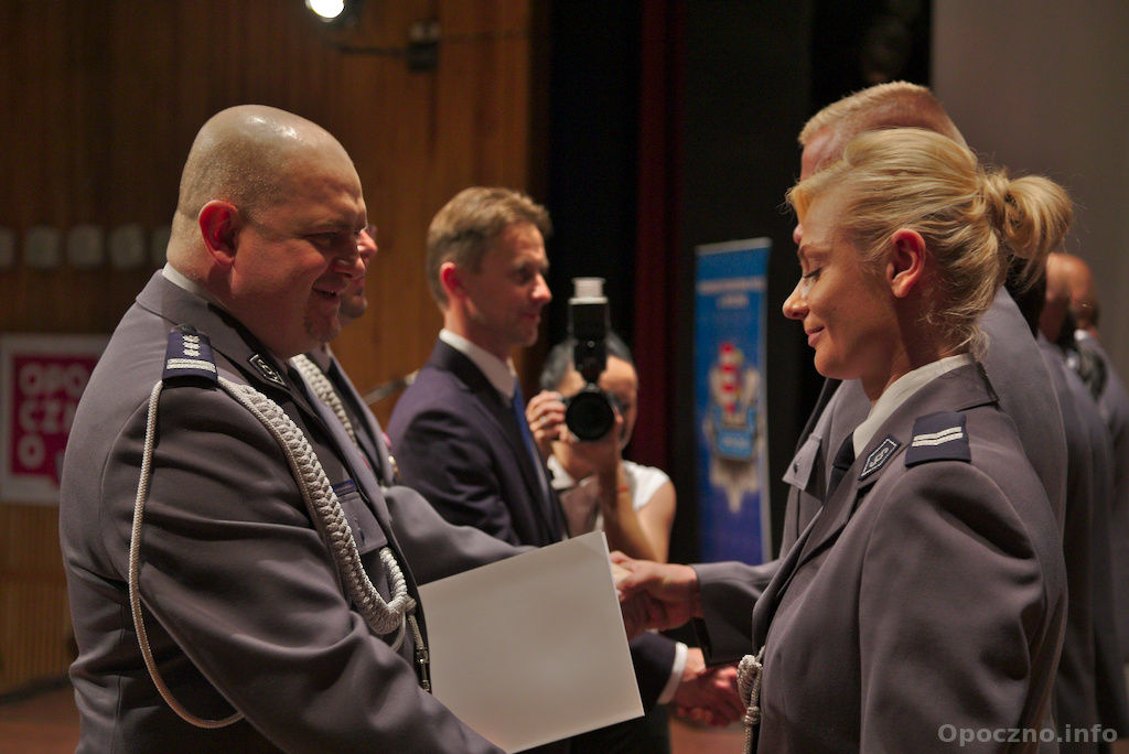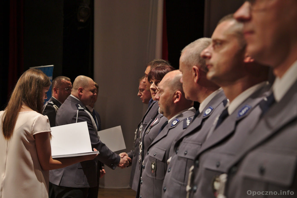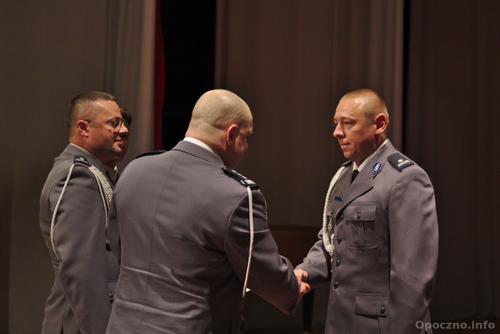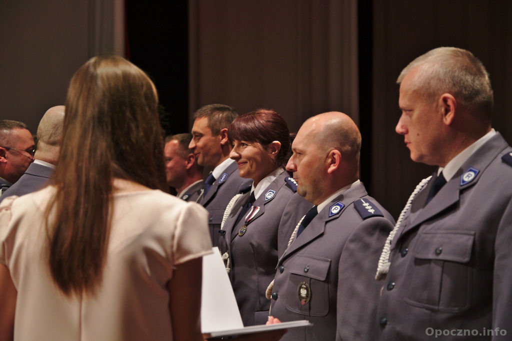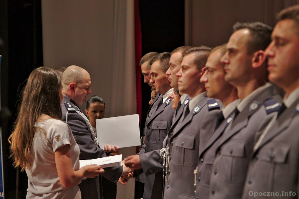Oficjalna część uroczystości, któr odbyła się na sali widowiskowej Miejskiego Dom Kultury w Opocznie była okazją do wręczenia odznaczeń i 47 nominacji na wyższy stopień służbowy. Komendant Wojewódzki Policji w Łodzi odznaczył brązową odznaką „Zasłużony Policjant” dwoje funkcjonariuszy asp.szt. Barbarę Stępień oraz asp. Krzysztofa Kumorowskiego.
