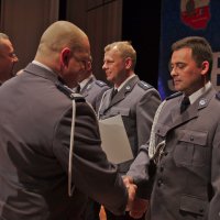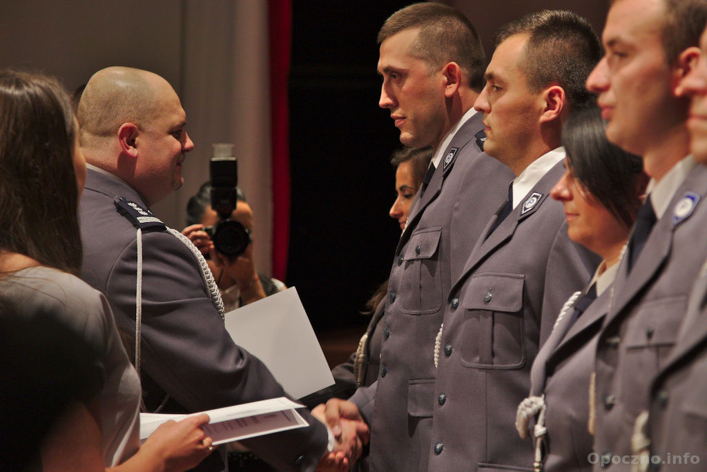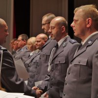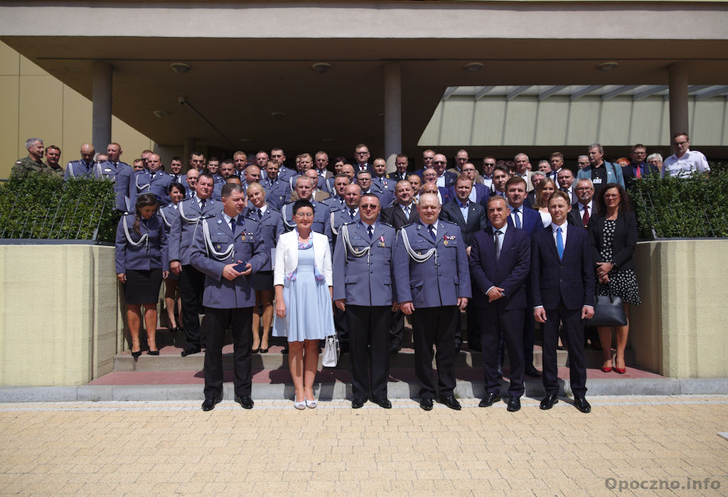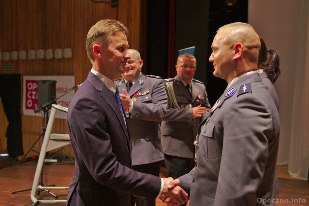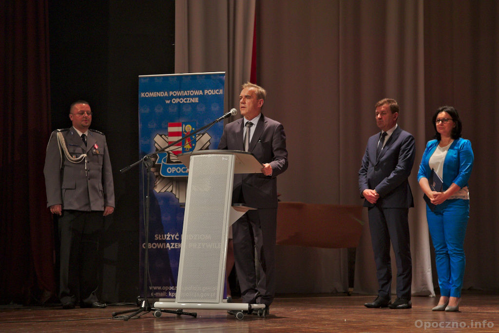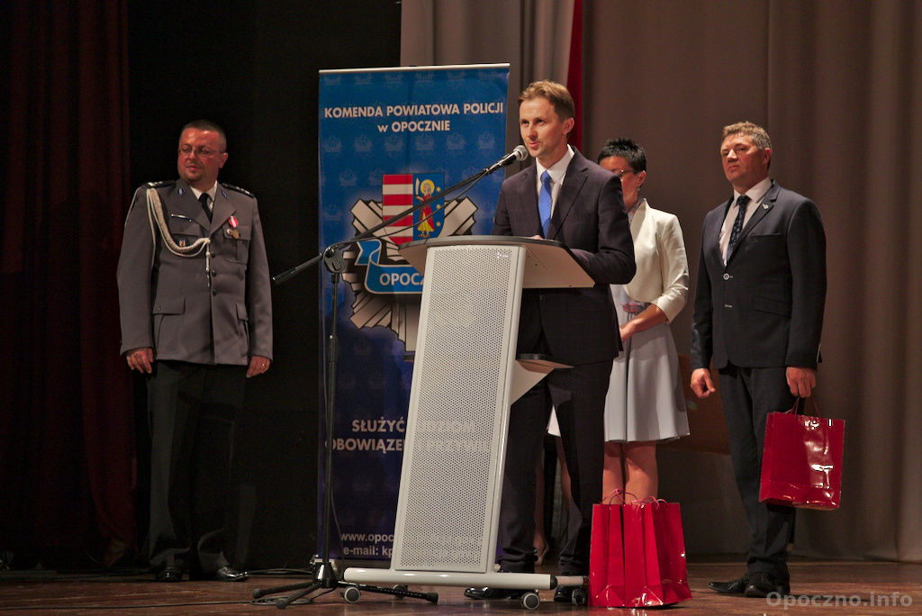 Oficjalna część uroczystości, któr odbyła się na sali widowiskowej Miejskiego Dom Kultury w Opocznie była okazją do wręczenia odznaczeń i 47 nominacji na wyższy stopień służbowy. Komendant Wojewódzki Policji w Łodzi odznaczył brązową odznaką „Zasłużony Policjant” dwoje funkcjonariuszy asp.szt. Barbarę Stępień oraz asp. Krzysztofa Kumorowskiego.