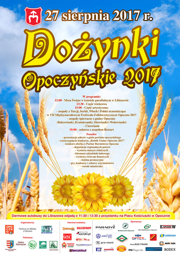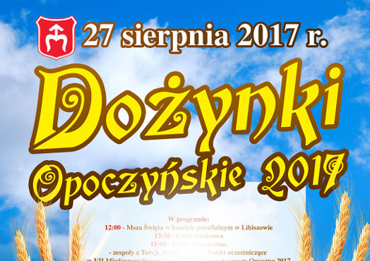 Gmina Opoczno zaprasza na Dożynki Opoczyńskie 2017, które odbędą się 27 sierpnia 2017 roku w Libiszowie.