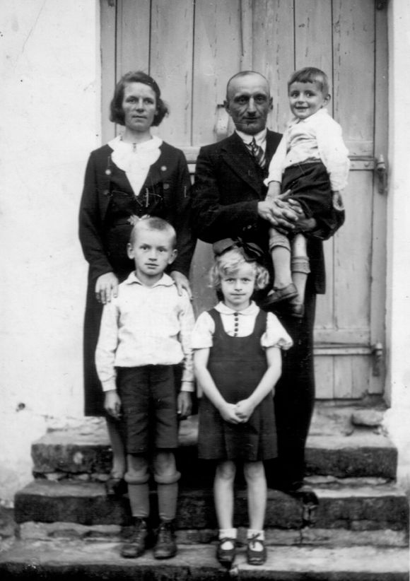 Na zdjęciu rodzina Bachorzów ze Słupi koło Jarocina podczas wysiedlenia w Białaczowie, rodzice Helena i Stanisław z dziećmi: Stefanią, Henrykiem i Janem.