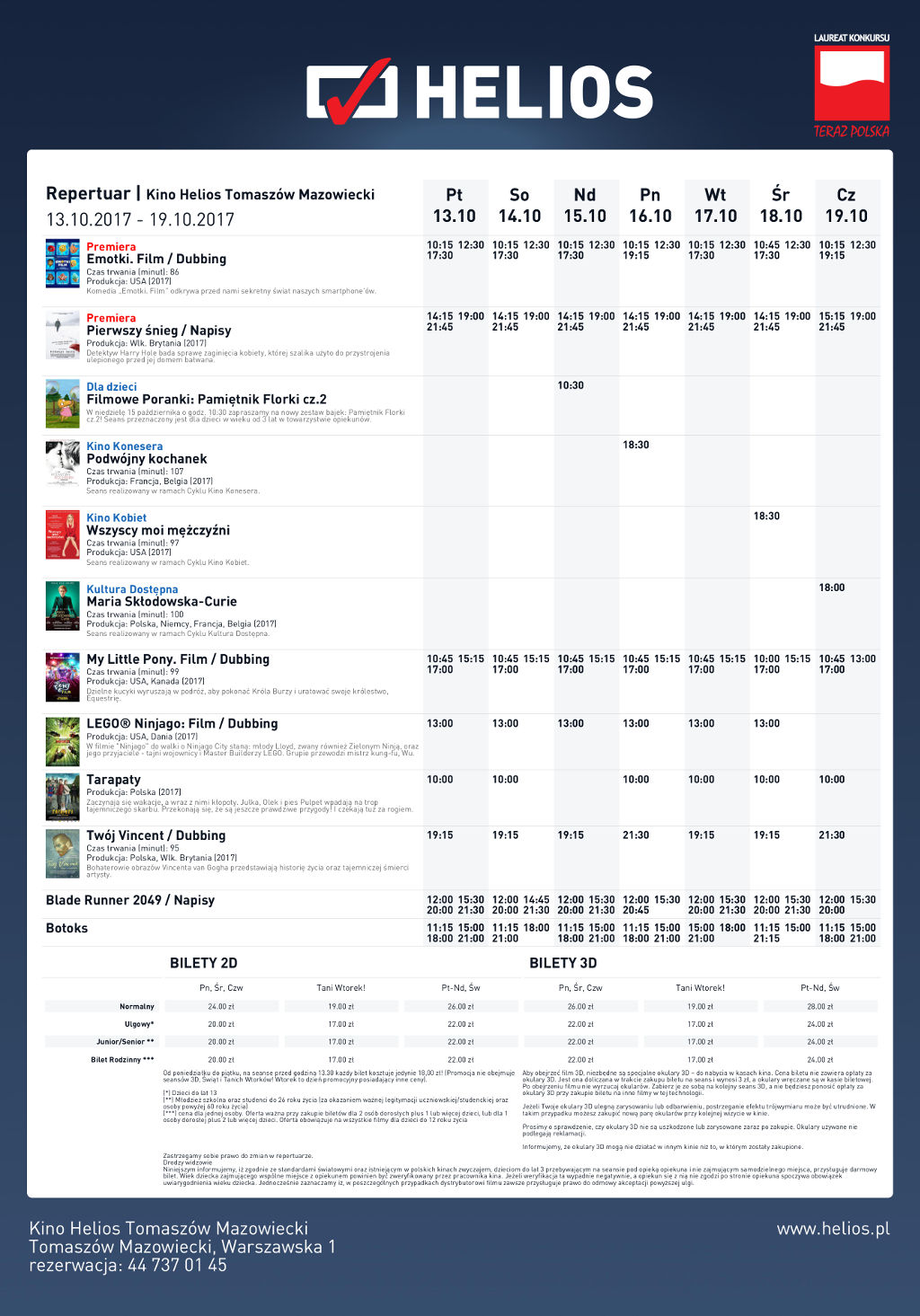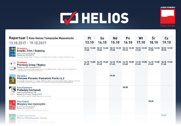 Kino Helios w Tomaszowie Mazowieckim zaprasza na kolejne premiery. W tym tygodniu Emotki. Film oraz Pierwszy śnieg.