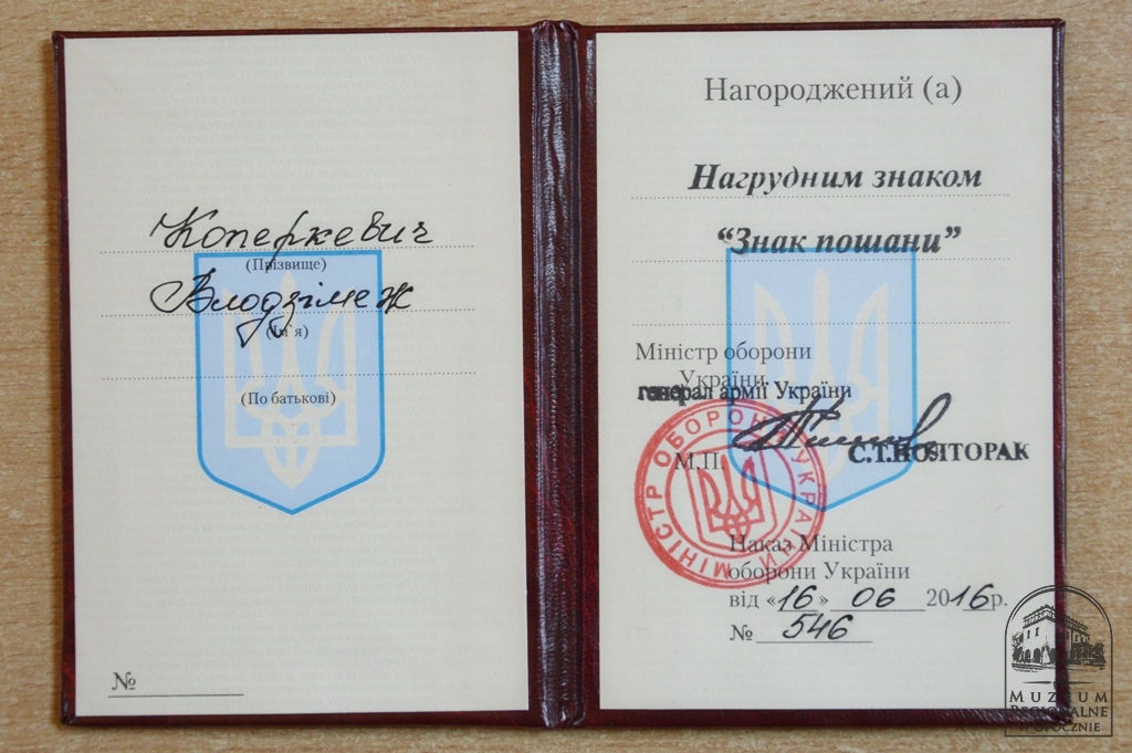 Uroczysta dekoracja odbyła się w siedzibie Muzeum Regionalnego w Opocznie. Odznaczenie wręczyła pani Yuliia Rabtsun, przedstawicielka Konsulatu Honorowego Ukrainy w Łodzi w towarzystwie Oliwii Wysockiej.