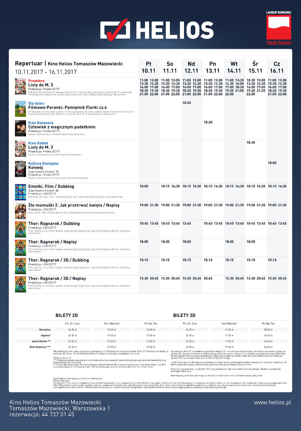 | Repertuar kina Helios w Tomaszowie Mazowieckim 10-16 listopada 2017 roku |