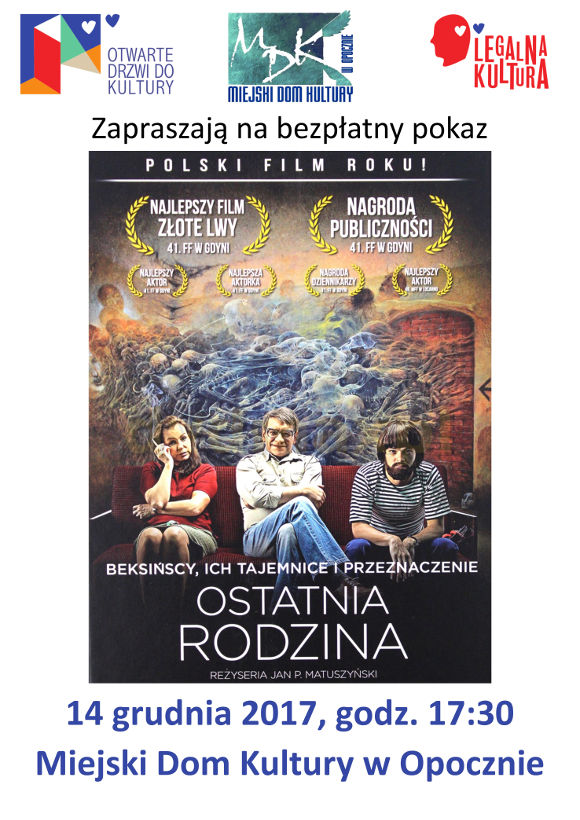 Miejski Dom Kultury w Opocznie wraz z fundacją Legalna Kultura, w ramach akcji Otwarte Drzwi Do Kultury, zapraszają na film „Ostatnia rodzina”.