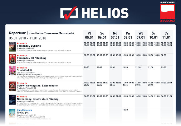 | Repertuar 05-11.01.2018 Helios Tomaszów Mazowiecki | ||||