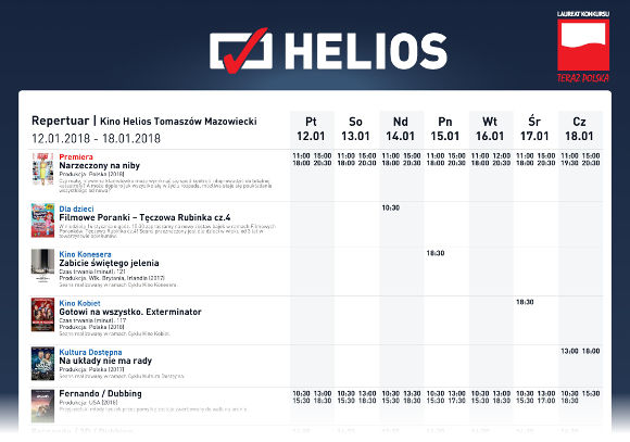 | Helios Tomaszów Mazowiecki - repertuar 12-18 stycznia 2018 roku | ||||