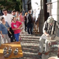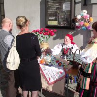 Natomiast przed muzeum miał miejsce kiermasz opoczyńskich twórców ludowych i artystów nieprofesjonalnych. Można było zaopatrzyć się w przeróżne wyroby rękodzielnicze. Dodatkowo zorganizowano pokaz garncarski w wykonaniu Jarosława Rodaka z Rędocina. Garncarz prezentował swoje wyroby, które na miejscu wykonywał. Powstawały przepiękne dzbaneczki, misy czy garnki.