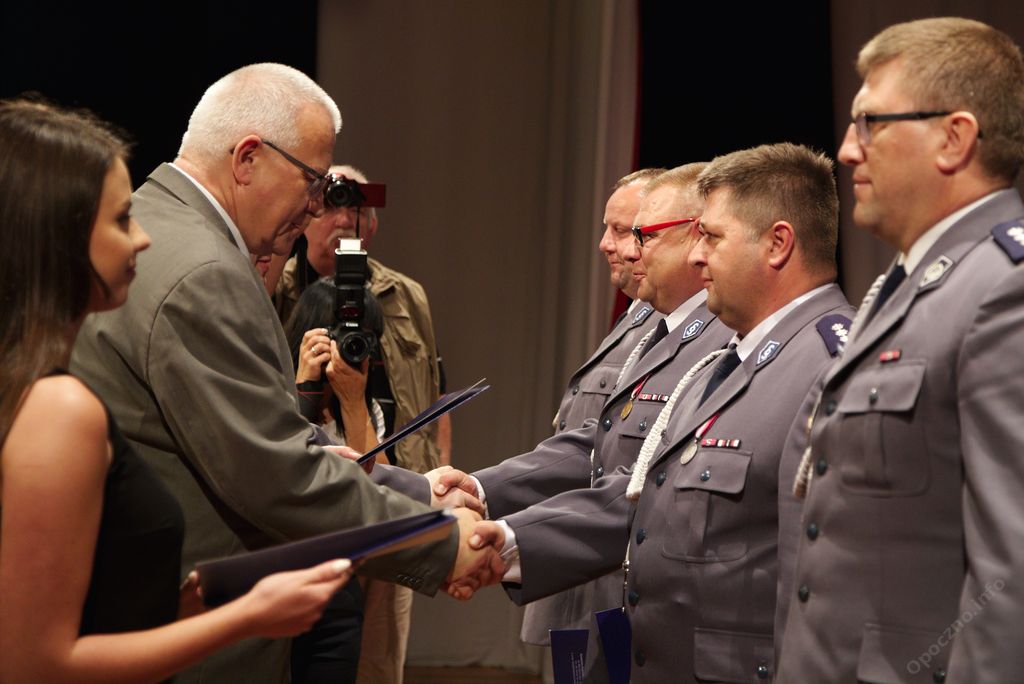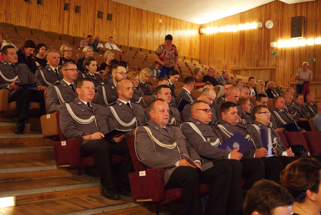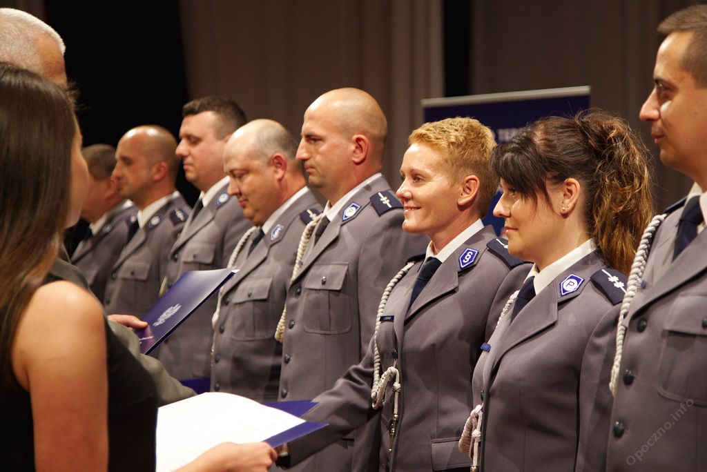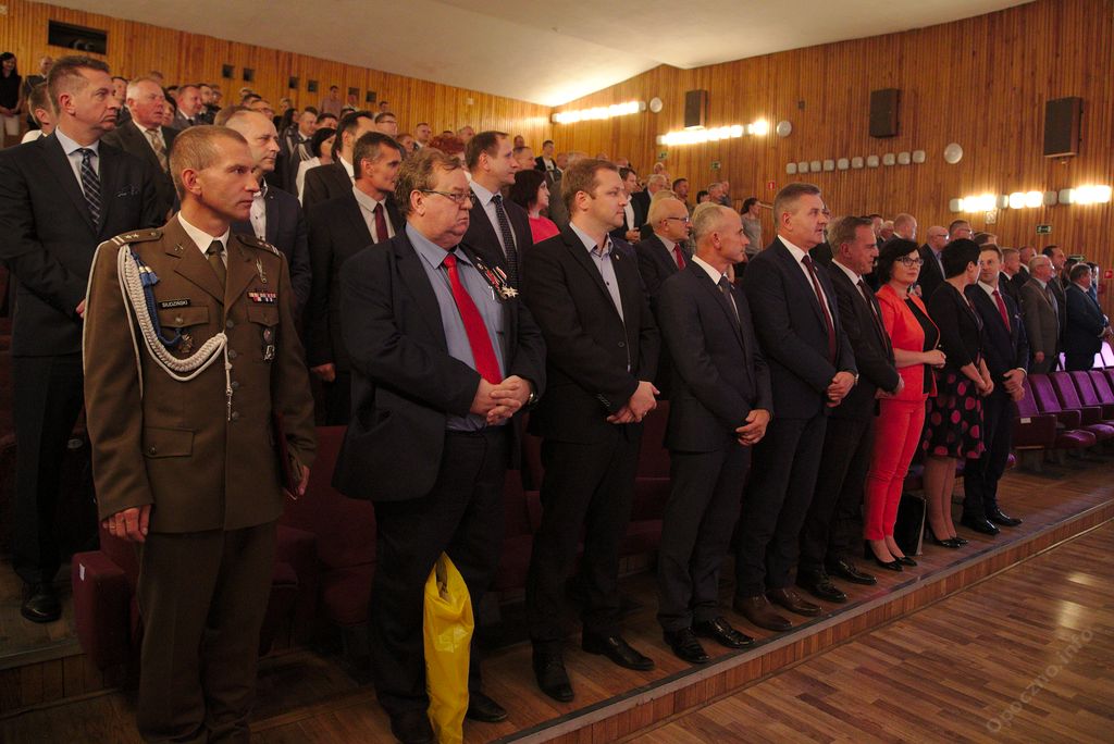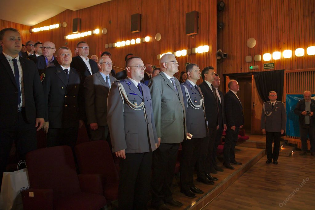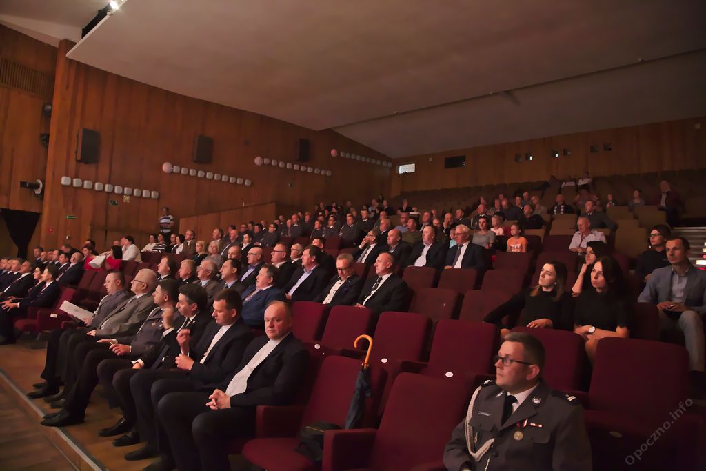Cześć oficjalna uroczystości rozpoczęła się w gościnnych progach Miejskiego Domu Kultury w Opocznie. Swoją obecnością uroczystość uświetnili: m.in. kapelan opoczyńskiej Policji ks. Leszek Sokół, Dyrektor Biura Posła na Sejm Rzeczpospolitej Polskiej Roberta Telusa, Przewodnicząca Rady Powiatu Opoczyńskiego wraz z Wicestarostą Opoczyńskim, Burmistrz Opoczna wraz z zastępcami oraz sekretarzem miasta, wójtowie gmin z powiatu opoczyńskiego, Szef Sztabu 9 Brygady Wojsk Obrony Terytorialnej w Łodzi, Prezes Zarządu Stowarzyszenia Rodzina Policyjna 1939 roku, Komendant Państwowej Straży Pożarnej w Opocznie, Prezes Sądu Rejonowego w Opocznie, Prokurator Rejonowy w Opocznie, Zastępca Nadleśniczego Nadleśnictwa Opoczno, z-ca Dyrektora Szpitala Powiatowego, szefowie: Powiatowego Centrum Pomocy Rodzinie, Poradni Psychologiczno- Pedagogicznej, Muzeum Regionalnego, Powiatowego Inspektoratu Nadzoru Budowlanego, Dyrekora Ośrodka Szkolno-Wychowawczego, Dyrektorów szkół: SP nr 3, ZSP nr 1. Wśród zaproszonych gości nie zabrakło także właściciela Grupy Paradyż wraz z prezesami zarządu, Prezesa firmy Remtrak, prezesów zarządu firm: Opoczno. S.A, Optex S.A. Prezesa MPK w Opocznie,Prezesa Zakładu Energetyki Cieplnej, właścicieli firm: „WOY”- Bukowiec Opoczyński, Agro-Vikt, Bud Trans, Ceramiki Serwis. Na zaproszenie odpowiedzieli także przedstawiciele lokalnych firm i instytucji, którzy na co dzień współpracują z opoczyńską komendą, nie zabrakło wśród nich dowódcy jednostki Strzeleckiej Oddziału Piechoty Armii Krajowej w Paradyżu. Oczywiście obecni byli także przedstawiciele emerytów policyjnych, rodziny policjantów i pracowników opoczyńskiej policji oraz przedstawiciele mediów.