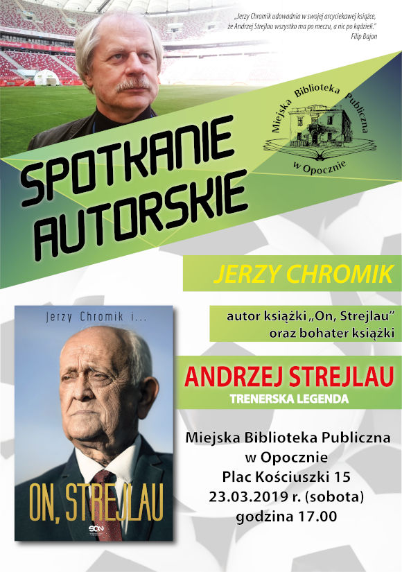 Miejska Biblioteka Publiczna w Opocznie zaprasza na spotkanie autorskie z Jerzym Chromikiem, autorem książki "On, Strejlau" oraz Andrzejem Strejlauem.
