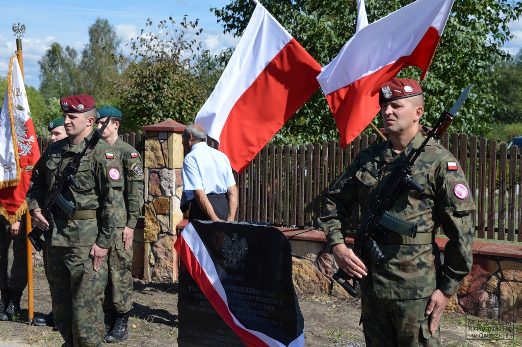 Generał brygady Adam Marczak dowódca 25 Brygady Kawalerii Powietrznej w Tomaszowie Mazowieckim, ppłk Wiesław Jaskulski Wojskowy Komendant Uzupełnień w Tomaszowie Mazowieckim, kombatanci, przedstawiciele władz samorządowych na czele ze starostą opoczyńskim Marcinem Baranowskim, zastępcą burmistrza Opoczna Tomaszem Łuczkowskim, wójtem gminy Białaczów Barbarą Goworek i Żarnów dr. Krzysztofem Nawrockim, wzięli udział we wczorajszej uroczystości odsłonięcia tablicy pamiątkowej poświęconej ppor. Bronisławowi Dudzie, jego żony Marii oraz mieszkańcom powiatu opoczyńskiego poległym, zamordowanym i zaginionym podczas drugiej wojny światowej. W Petrykozach, gdzie stanęła tablica, nie zabrakło również licznie zgromadzonej rodziny zamordowanego przez Gestapo ppor. Dudy oraz mieszkańców miejscowości.