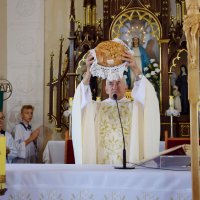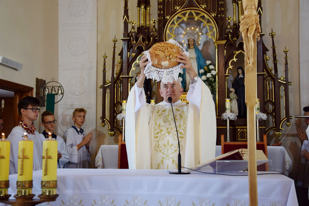 Poprzedziła je msza św. w kaplicy pw. Niepokalanego Poczęcia N.M.P. w Karwicach. Mszę dożynkową celebrował dziekan kolegiaty św. Bartłomieja w Opocznie ks. proboszcz Jan Serszyński wraz z ks. Tomaszem Nobisem, opiekunem kaplicy w Karwicach.