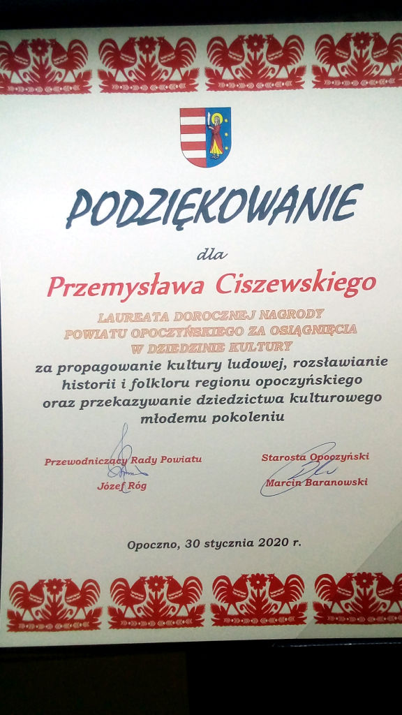 Przemysław Ciszewski laureatem dorocznej nagrody Powiatu Opoczyńskiego za osiągnięcia w dziedzinie kultury