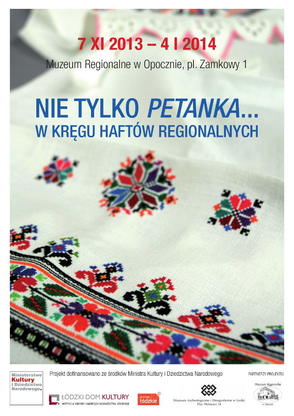 Muzeum Regionalne w Opocznie zaprasza 7 listopada 2013 roku, o godzinie 13:00 na wernisaż wystawy „Nie tylko petanka... W kręgu haftów regionalnych”. Wystawa będzie prezentować efekty warsztatów i samodzielnych prac wykonanych przez uczestników projektu o tej samej nazwie.