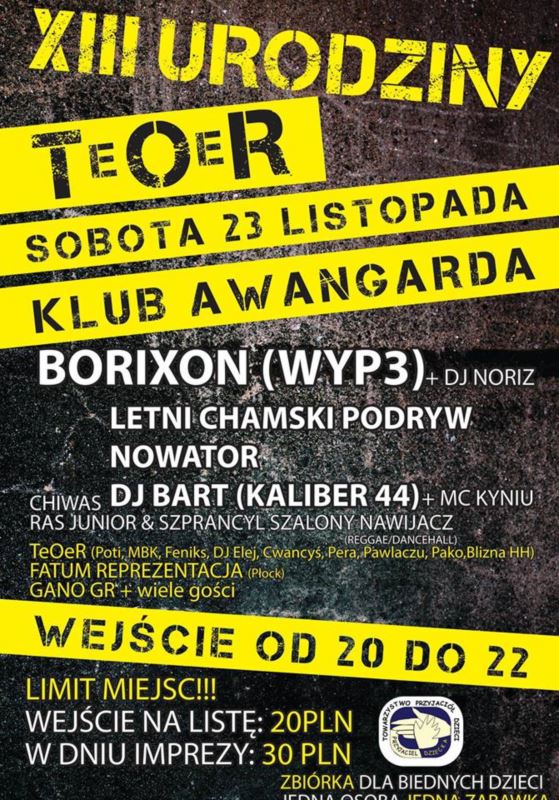 Miejski Dom Kultury w Opocznie oraz Art&Music Club Avangarda zapraszają na urodzinowy koncert grupy TeOeR, który odbędzie się w sobotę, 23 listopada 2013 roku.
