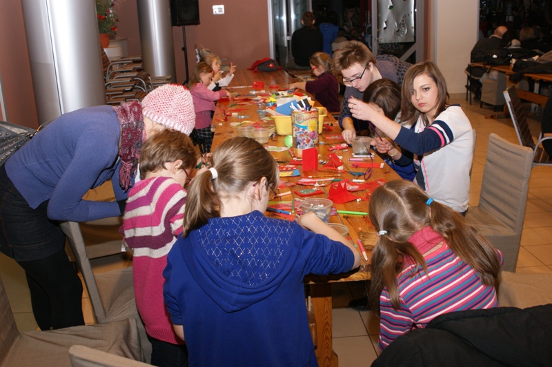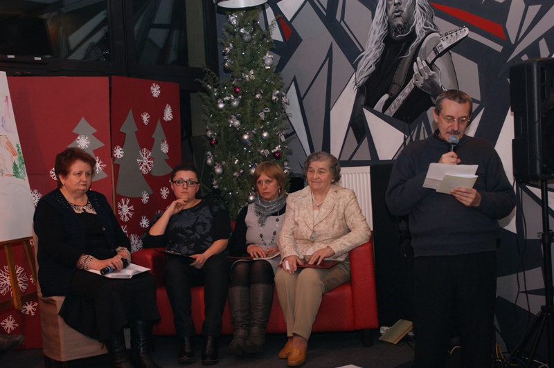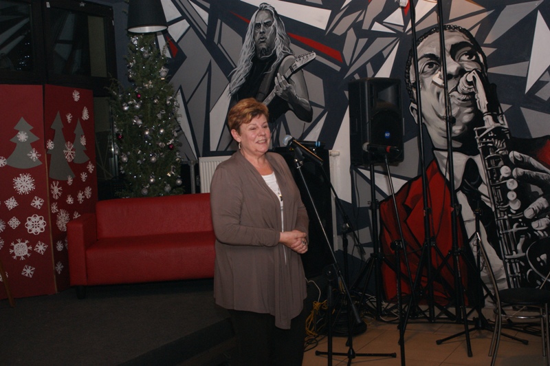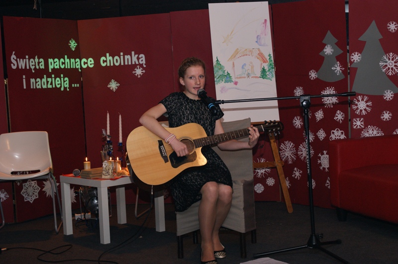 Do wypełnionego po brzegi Klubu przybyli wykonawcy i zaproszeni goście. W bardzo miłej i świątecznej atmosferze, wśród pięknej i klimatycznej dekoracji wysłuchaliśmy prozy bożonarodzeniowej w wykonaniu młodzieży z koła teatralnego, tradycyjnych kolęd i pastorałek, które zaprezentował Chór Seniora „Zorza”, wierszyków świątecznych pięknie recytowanych przez najmłodszych uczestników koła teatralnego i piosenek o świętach w wykonaniu wokalistów i instrumentalistów z kół muzycznych MDK. Swoje własne utwory zarecytowali zaproszeni goście z Klubu Literackiego „Nad Wąglanką”. Dodatkową atrakcją wieczoru było malowanie kartek świątecznych przez uczestników kółka plastycznego MDK. Kartki można obejrzeć na choince w MDK.