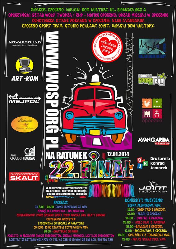 Jak co roku, 22 Finał odbędzie się również w Opocznie. Poniżej przedstawiamy program 22 opoczyńskiego Finału WOŚP.