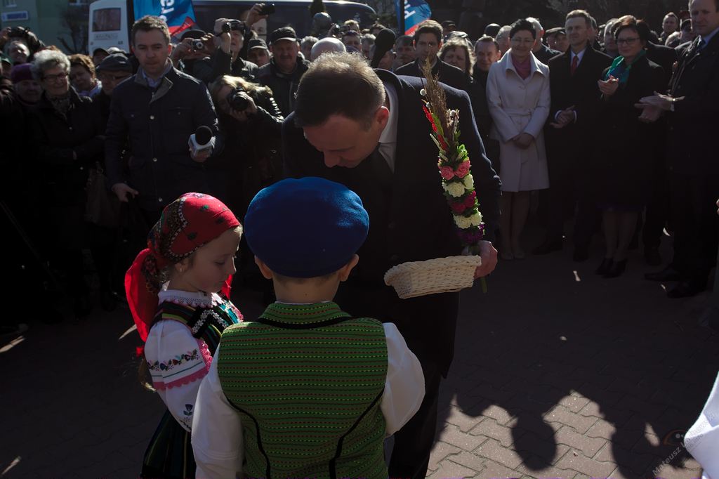 Na zakończenie Andrzej Duda otrzymał w prezencie palmę i pisanki wielkanocne wykonane przez opoczyńskie twórczynie ludowe oraz obraz Matki Bożej Świętorodzinnej, przekazany przez Posła na Sejm RP, Roberta Telusa.