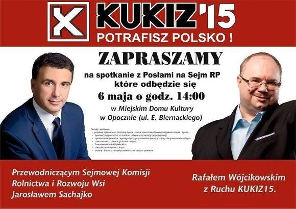 Ruch Kukiz'15 zaprasza na spotkanie z Posłami na Sejm RP, które odbędzie się 6 maja o godzinie 14:00 w Miejskim Domu Kultury w Opocznie.