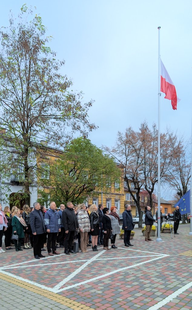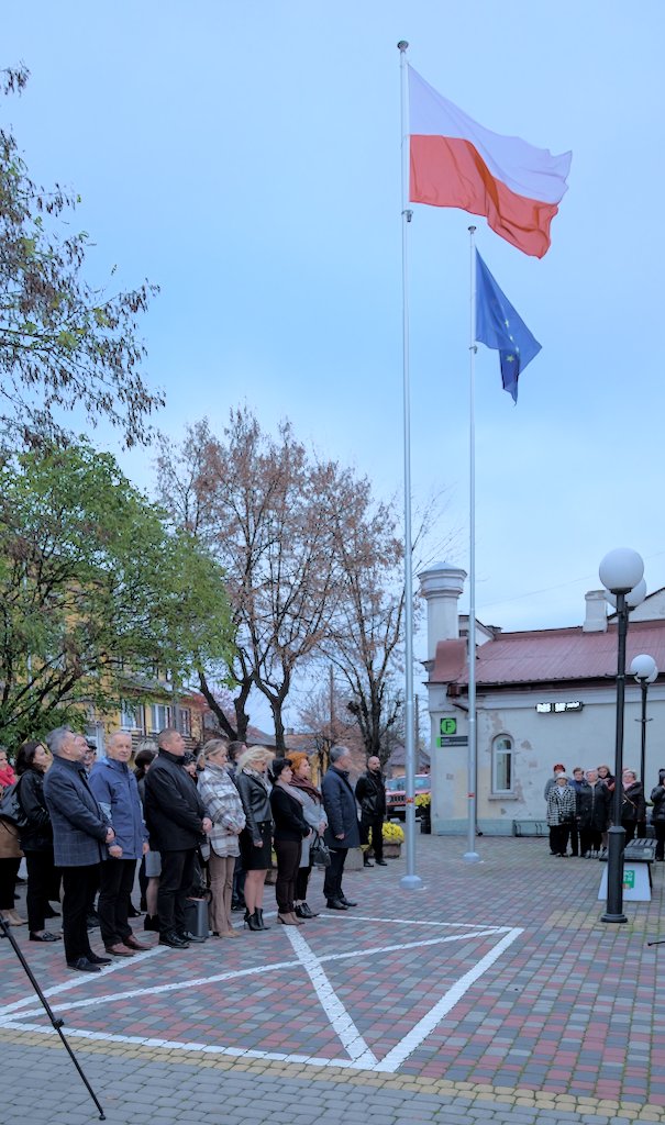 Oficjalne wciągnięcie na maszt flag Polski i Unii Europejskiej odbyło się w poniedziałek, 7 listopada o godzinie 15:00. Uroczystości akompaniowała Orkiestra Miejska oraz Cantabile z Opoczna.