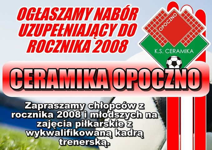 Klub Sportowy Ceramika Opoczno ogłasza nabór uzupełniający chłopców z rocznika 2008 i młodszych.