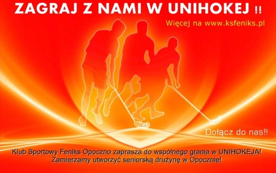 Klub Sportowy Feniks Opoczno zaprasza do wspólnego grania w unihokeja. Zamierzamy utworzyć seniorską drużynę w Opocznie i uczestniczyć w Polskiej Lidze Unihokeja, a dalej promować ten sport wśród najmłodszych!