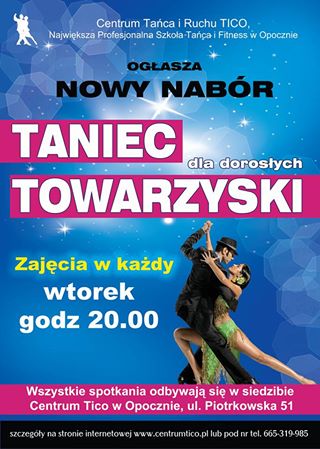 Centrum Tańca i Ruchu TICO zaprasza osoby dorosłe do udziału w zajęciach rekreacyjno - sportowych w kolejnych nowo utworzonych grupach.