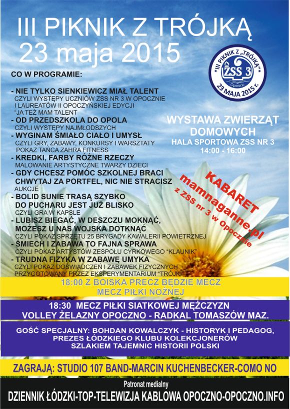 Volley Żelazny Opoczno, Zespół Szkół Samorządowych nr 3 w Opocznie zapraszają na mecz piłki siatkowej pomiędzy Volley Żelazny Opoczna a Radkal Tomaszów Mazowiecki, który odbędzie się 23. maja o godzinie 18:30 w hali sportowej przy ZSS nr 3 w ramach Pikniku z Trójką.