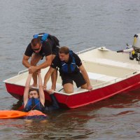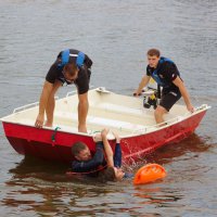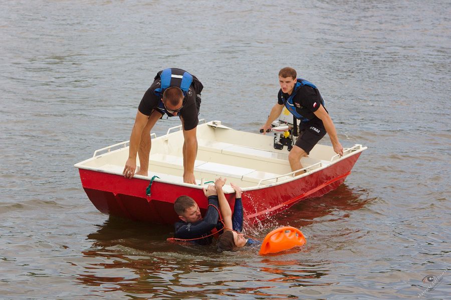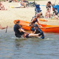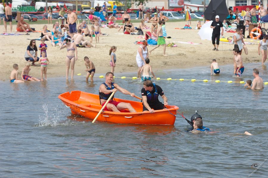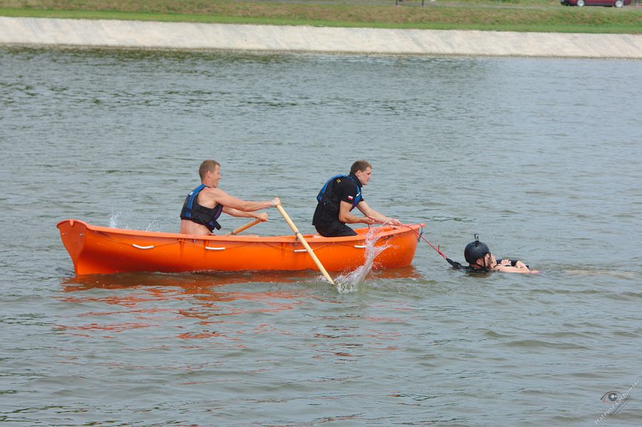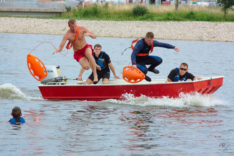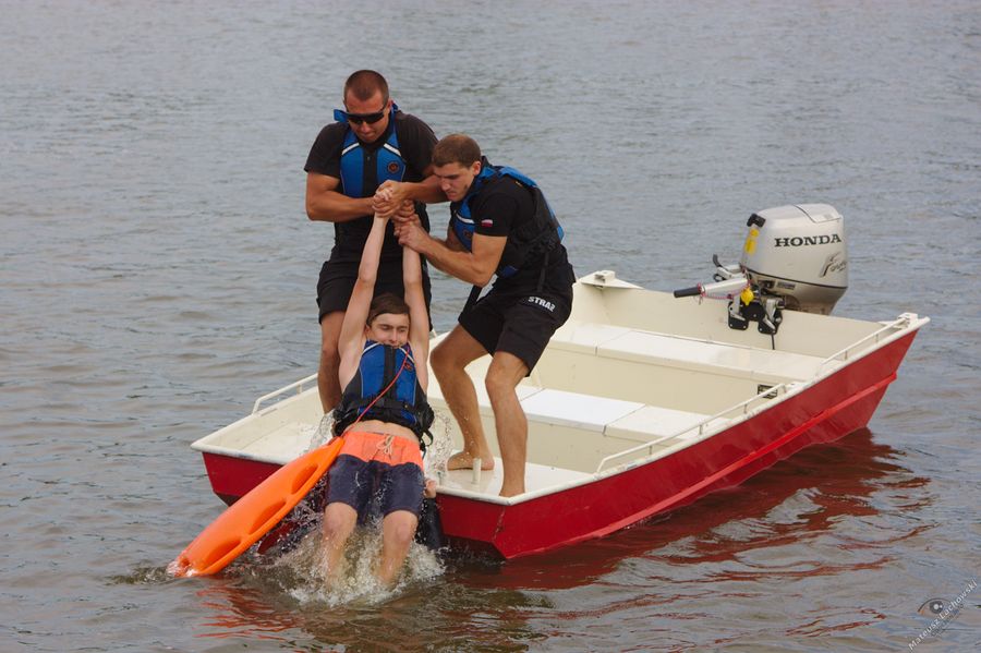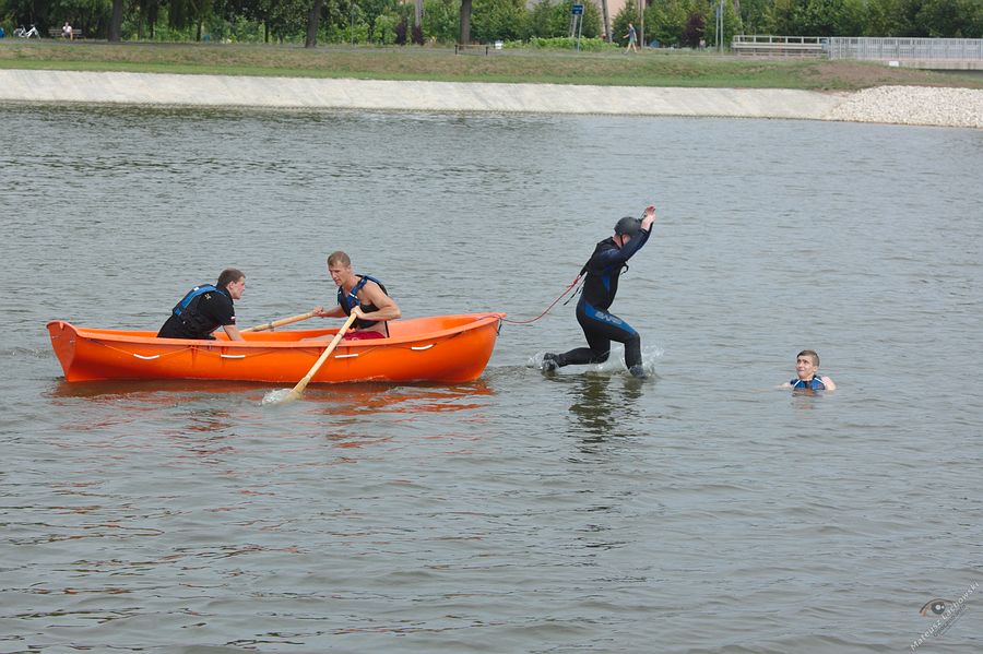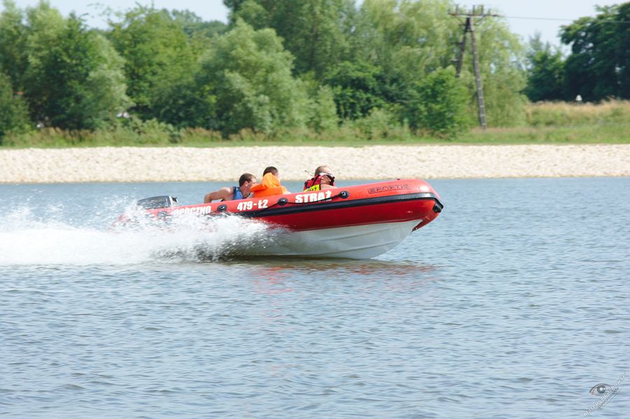 Druchowie z opoczyńskiej OSP zaprezentowali metody ratowania tonących z wykorzystaniem łodzi motorowej, oraz liny. Ostatnim punktem pokazu było podejmowanie zagrożonego z wykorzystaniem łodzi wiosłowej. Warto tu przypomnieć, że w tej dyscyplinie nasi strażacy wywalczyli tytuł Mistrza Polski podczas Mistrzostw Polski Strażaków Ochotników w Ratownictwie Wodnym i Powodziowym w Sierakowie.