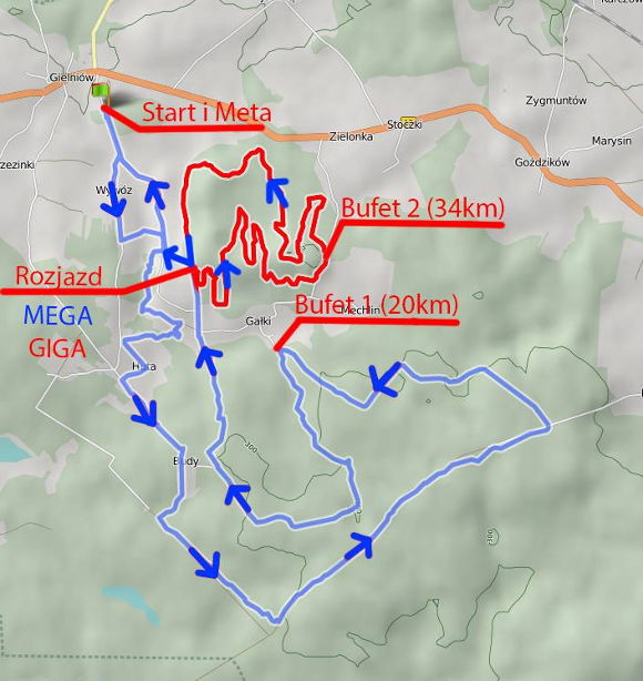 - Giga – ok 60 km, ok 1000m przewyższenia, dystans dla najbardziej wprawionych i wytrwałych