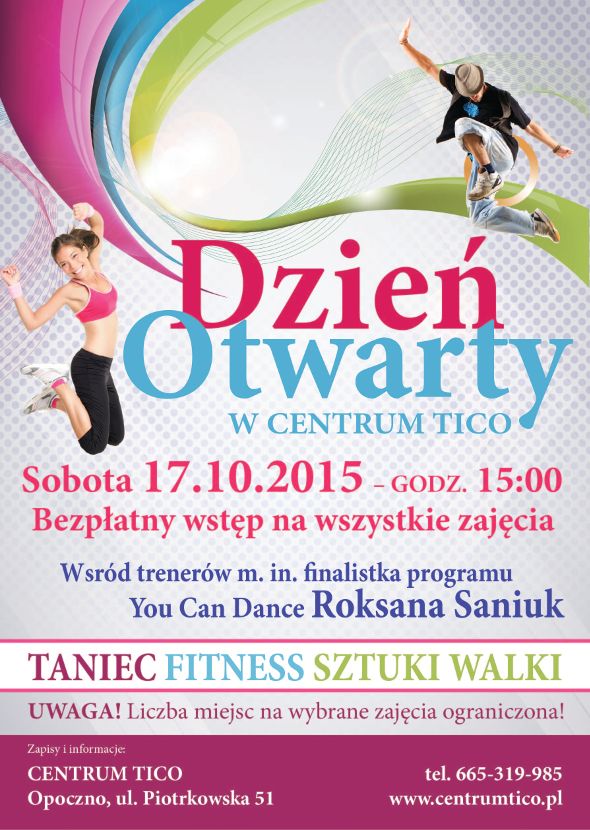 Centrum Tańca i Ruchu Tico zaprasza w najbliższą sobotę, 17. października .2015 roku o godzinie 15:00 na Dzień Otwarty w Centrum Tico.