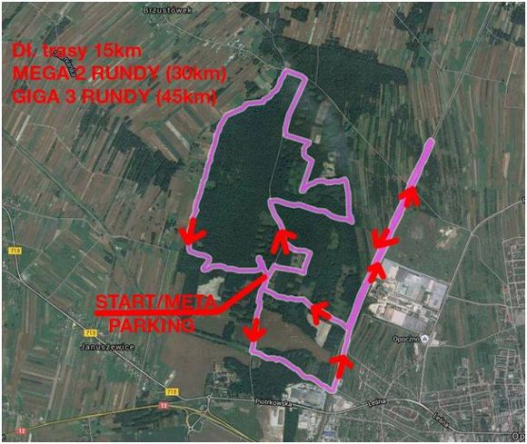 Start maratonu, parking oraz biuro zawodów usytuowane będą przy leśniczówce Januszewice.