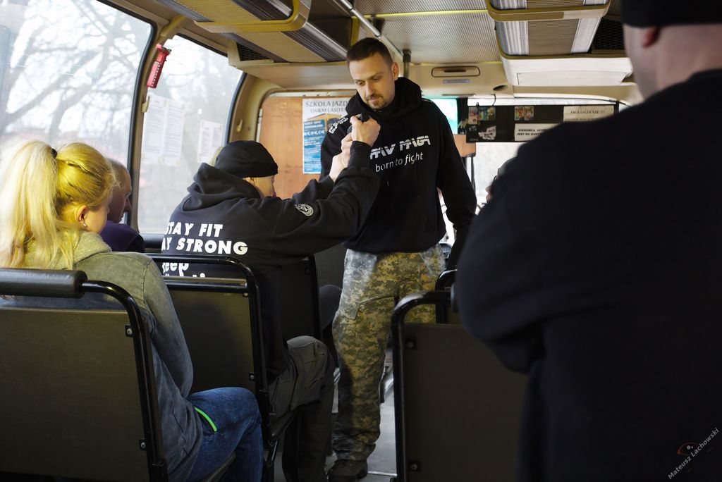 13 lutego przy leśniczówce w Lesie Januszewskim odbyło się szkolenie Krav Maga z zakresu obrony i taktyki walki w autobusie i innych zatłoczonych miejscach.