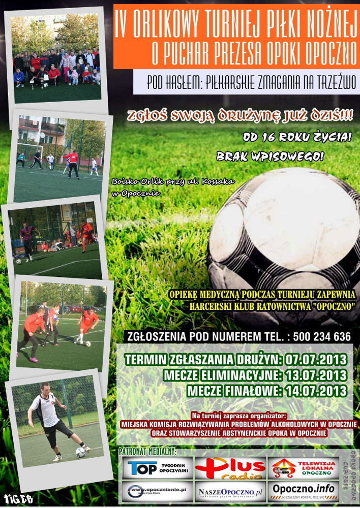 Na turniej zaprasza organizator: Abstynenckie Stowarzyszenie Klubu Wzajemnej Pomocy "Opoka" oraz Miejska Komisja Rozwiązywania Problemów Alkoholowych w Opocznie.