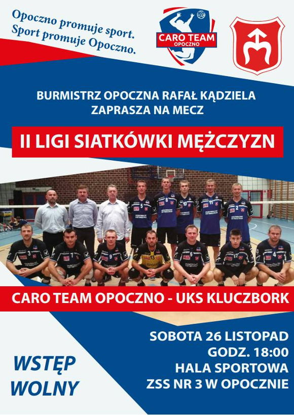 W ramach rozgrywek 3 grupy II ligi piłki siatkowej mężczyzn Caro Team Opoczno zmierzy się z UKS Kluczbork.