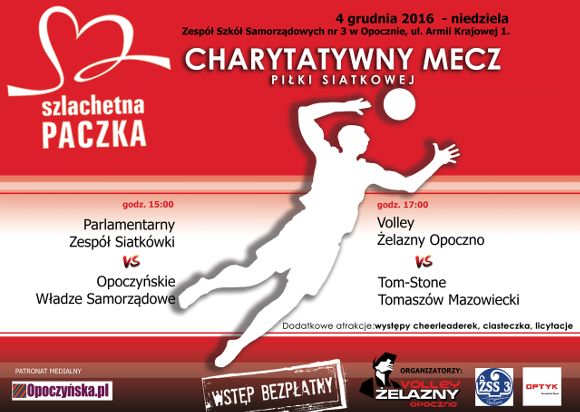 W najbliższą niedzielę tj. 4 grudnia br. w Opocznie odbędą się dwa mecze charytatywne piłki siatkowej mężczyzn.