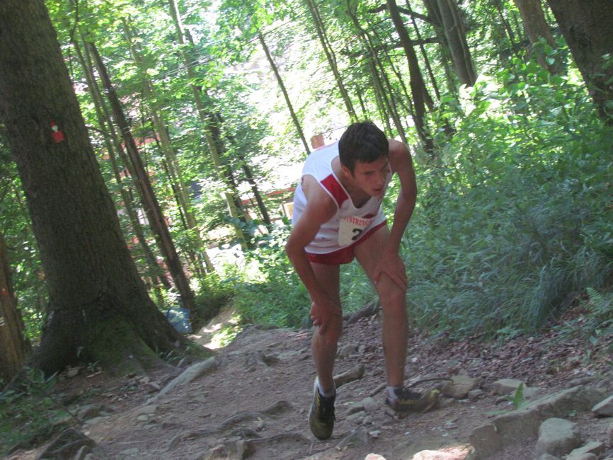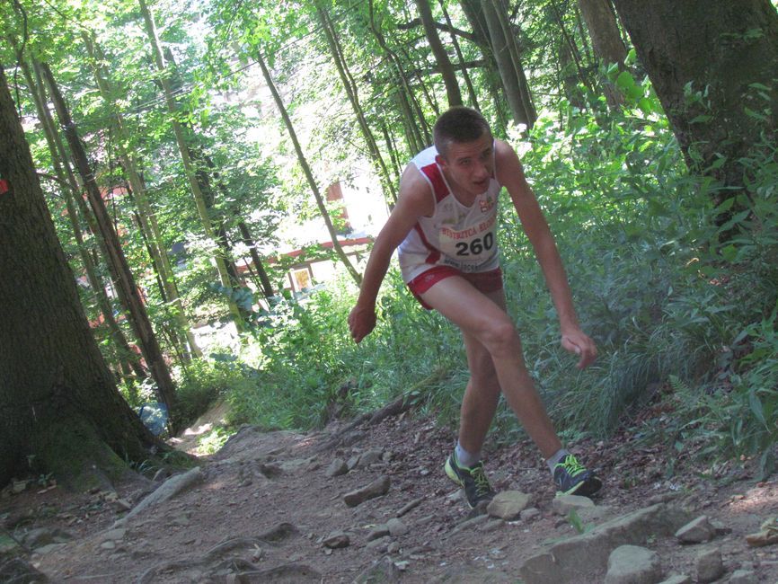 Z metra na metr nogi zaczęły być coraz cięższe, temperatura powietrza wynosiła 35 stopni C. Jeden z faworytów do złota w Juniorach upadł i nie ukończył biegu z powodu udaru słonecznego. Nasi zawodnicy również walczyli z upałem, górami i swoimi słabościami. Na mecie ostatecznie Szymon Wiktorowicz zameldował się, jako drugi zdobywając tytuł WICAMISTRZA POLSKI juniorów młodszych, brązowym medalistą został Mateusz Celak, który z skurczami i wielkim bólem wpadł na metę.