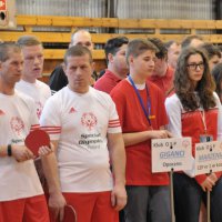 Po uroczystym wniesieniu flagi Olimpiad Specjalnych przy dźwięku hymnu i złożeniu przysięgi przez zawodniczkę klubu Tęcza Patrycji Heleniak, dyrektor Wydziału Polityki Społecznej rawskiego starostwa Andrzej Latek wraz z Prezesem Oddziału Regionalnego Olimpiad Specjalnych Janem Bujnowiczem, Piotrem Bajdą działaczem OROSPŁ