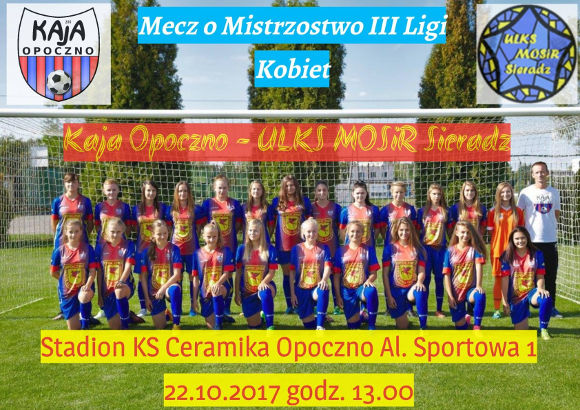 W niedzielę, 22 października 2017 roku zapraszamy kibiców piłki nożnej na Stadion Ceramiki Opoczno, gdzie o godzinie 13:00 odbędzie się mecz 9 kolejki łódzkiej grupy III Ligi Kobiet. Kaja Opoczno zmierzy się z liderem grupy, ULKS MOSiR Sierzadz.